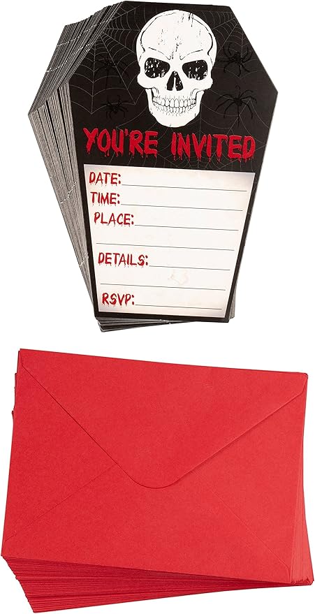 Amazon Com Tarjetas De Invitacion Para Halloween Paquete De 60 Invitaciones Para Fiestas De Halloween Con Sobres Diseno De Calavera 4 6 X 7 0 In Health Personal Care