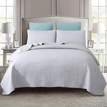 Couvre Lit D Ete Matelasse Double King Size Pur Coton 3 Pieces Couverture Coton Couette Literie Legere Draps Decoratifs White2 240cm 260cm Fr Cuisine Maison B07tzn4shb