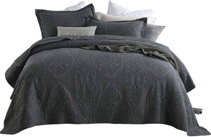 Couvre Lits 3 Pieces Haut De Gamme Courtepointe Boutis King Size Noir 100 Coton Reversible Dessus De Lit Matelasses Fleurs Brodees Couvertures Doubles Multifonctions Couette Avec 2 Taie D Oreiller Amazon Fr Cuisine Maison