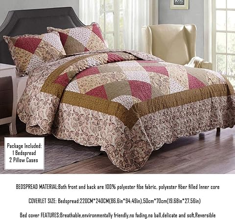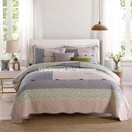 3 Pieces Coton Couette Couvre Lit Coton King Size Patchwork Quilt Couvre Lit Ensemble De Literie Cuisine Maison B07p6b9jc3