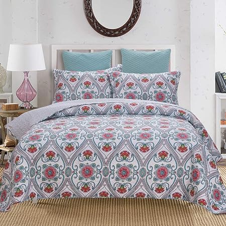 Couvre Lit Matelasse 3 Pieces King Size Fleuri Edredon Boutis Multifonction Patchwork Couette 100 Coton Couvre Lit 230 250cm Taie D Oreiller 50 70cm 2 Amazon Fr Cuisine Maison