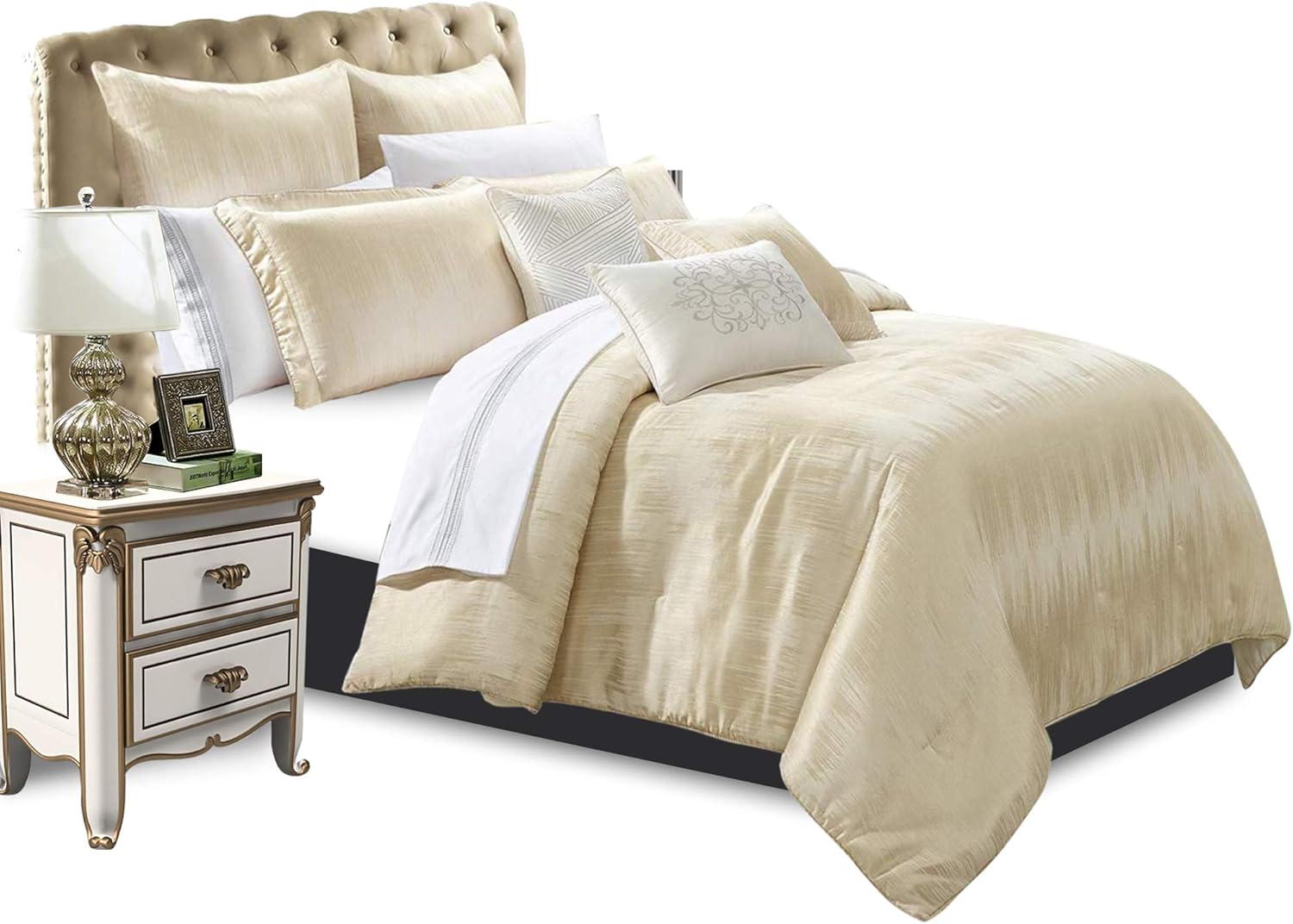 7 Piece Matelasse Couette Ensemble De Literie King Size Couvre Lit Jete De Lit Betty Creme
