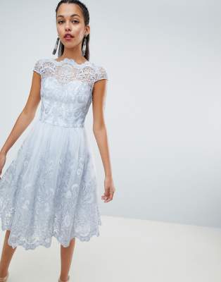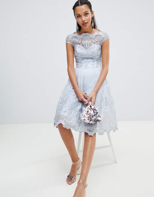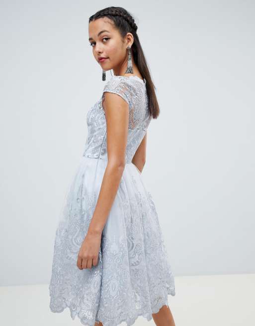 Chi Chi London Premium Lace Cap Sleeve Midi Dress With Scalloped Back Silver Grey 1132699 9hkcge78d