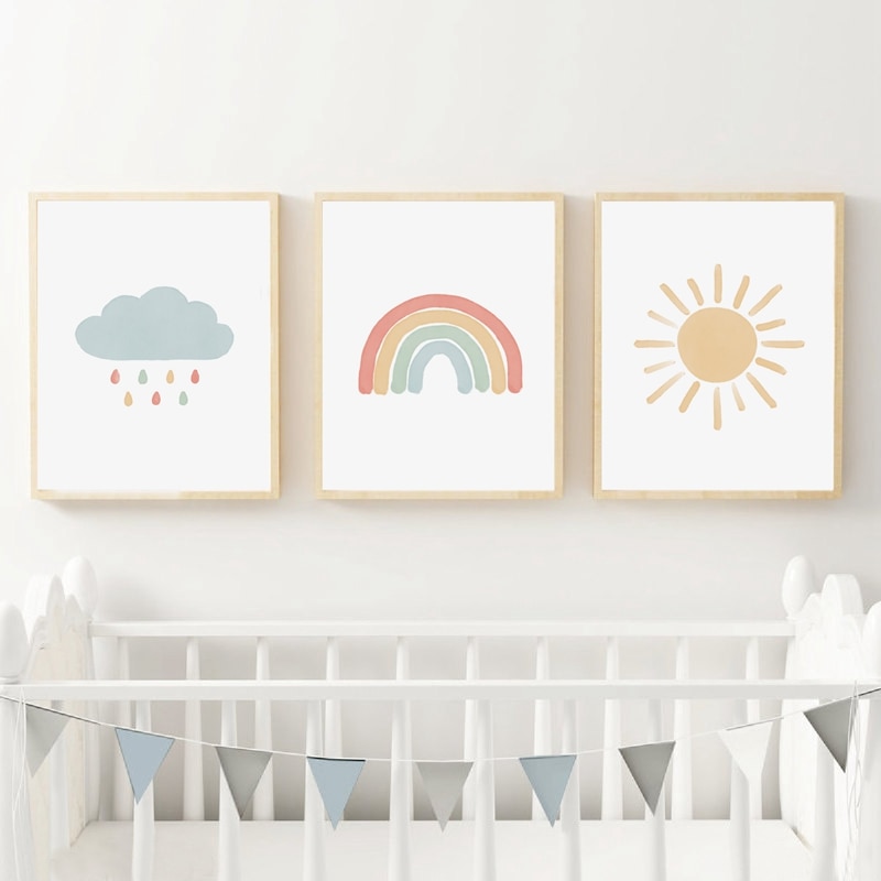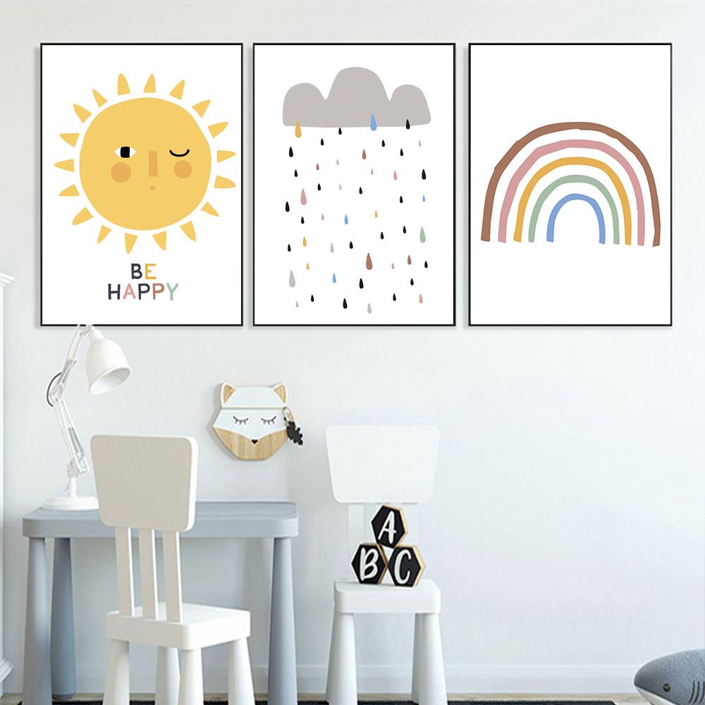 2020 Cartoon Sun Paintings Posters Rainbow Wall Prints Nursery Wall Art Canvas Poster Cloud Rain Pictures Nordic Kids Room Decor From Haloqueen 3 78 Dhgate Com