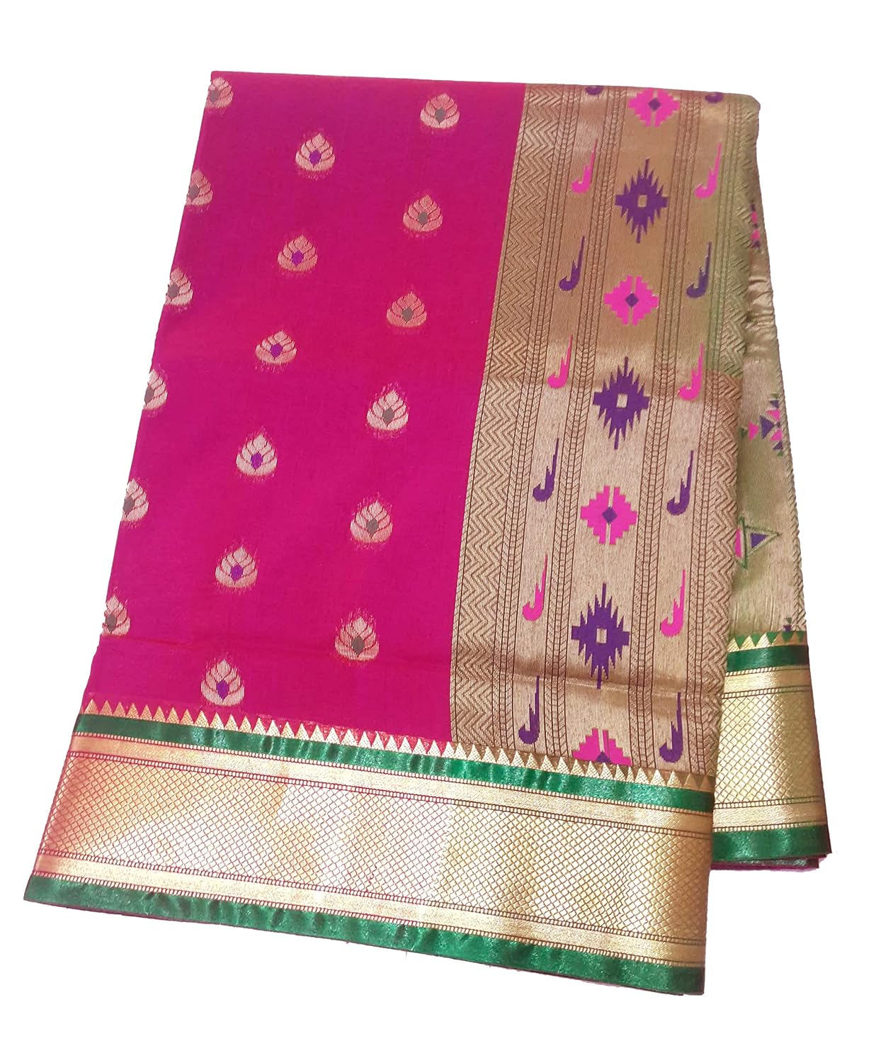 Buy Kshatriya Cloth Stores Women S Satin Silk 9 Yards Paithani Maharashtrian Style Saree Rani With Green Border And Pallu At Amazon In