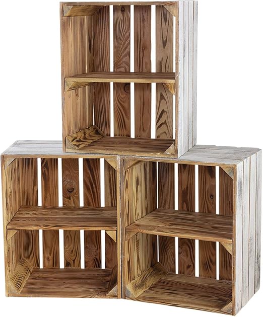 Obstkisten Online 3x Holzkisten Vintage Design In Grau Mit Geflammten Innenraum Inkl Querboden 40x30x50 Cm Stapelbare Kiste Als Regal Fur Schuhe Amazon De Kuche Haushalt