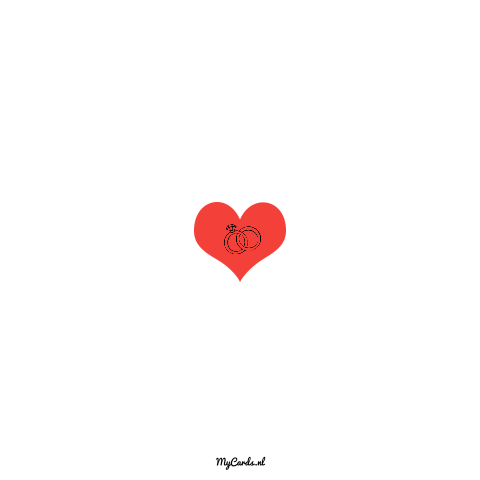 Hippe trouwkaart met getekend bruidspaar en rood hartje