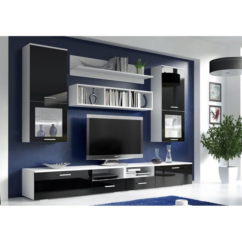 Living Room Furniture Franco Wall Unit Set Black Matte Black Gloss