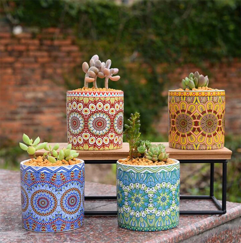 Simple Mandala Ceramics Succulents Plant Flower Pot Geometric Straight Printing Flower Pot Home Garden Decoration Aliexpress