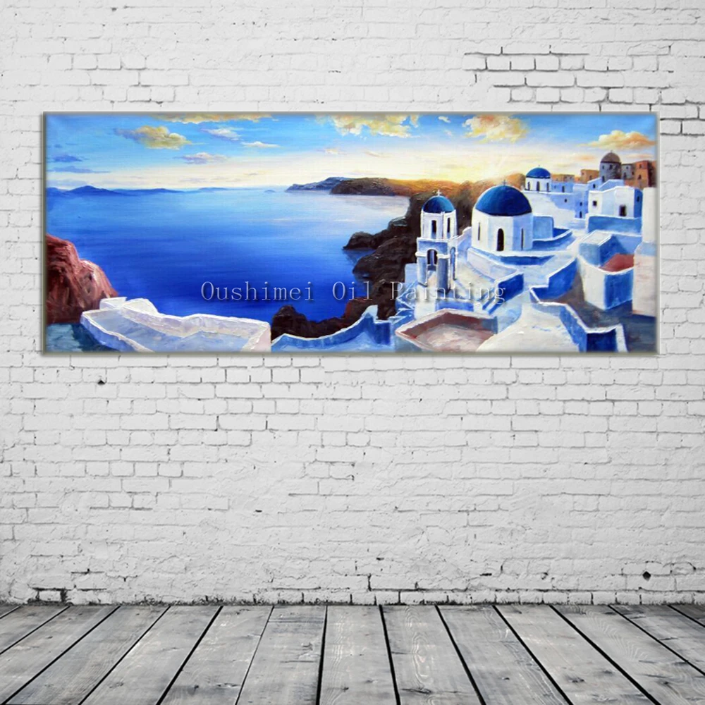 Tableau peint à la main de la mer égégée | Couteau, paysage, peinture à l'huile moderne, vue de la mer égée, Art mural, fait main, maison, paysage, toile | AliExpress