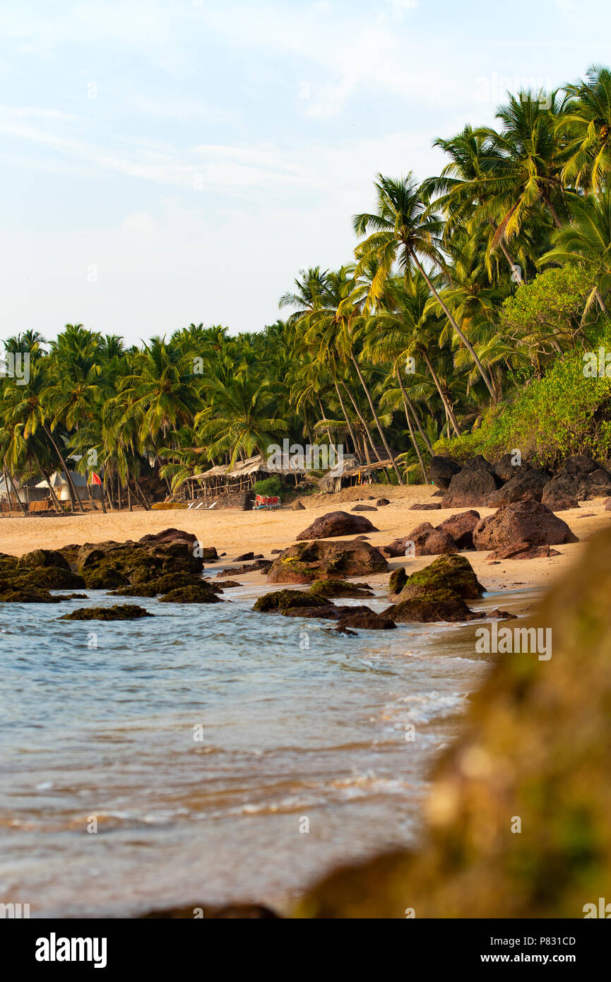 Bella e rilassante spiaggia fiancheggiato da verdi palme al tramonto. Varkala Kerala, India Foto stock - Alamy