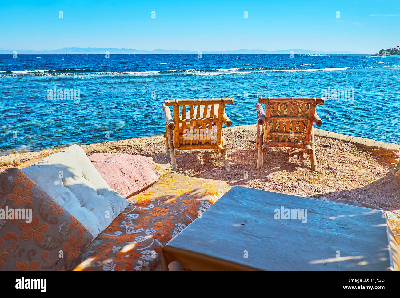 La bella spiaggia di Dahab con bella atmosfera rilassante e vedute panoramiche, Sinai, Egitto Foto stock - Alamy