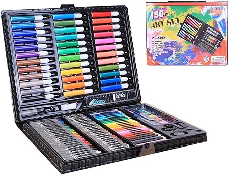 Amazon.com: 150 Pcs Deluxe Art Set for Drawing Painting, Art Supplies for Kids, Art Set for Drawing Painting with Portable Art Box, Art Kits Great Gift for Kids Or Beginners (Packag: Black)