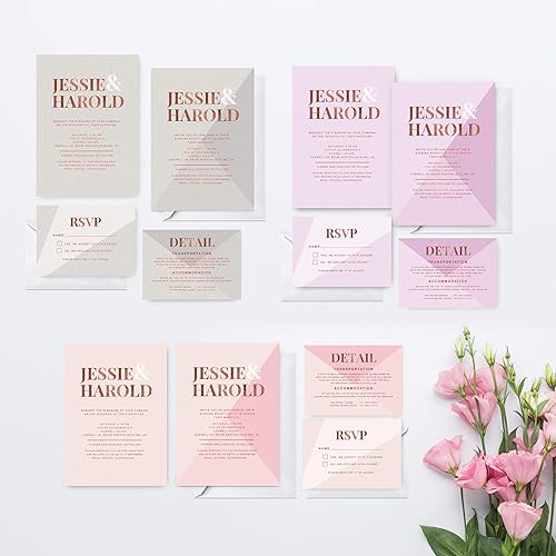 Personalised Modern Geometric Design Wedding Invitation Packs Wedding Day Evening Rsvp Info Card Set Amazon Co Uk Handmade