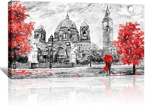 Amazon.com: Wall Art Decor for living room Canvas Art Simple Life Red creative painting romantic couples 20" x 40" Canvas Prints Black and white imperial palace landscape painting Ready to Hang Home