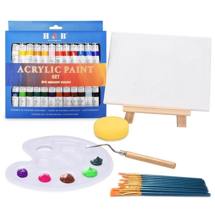 H&B 24 couleurs 12 ml peinture acrylique pigments aquarelle peintures tube avec chevalet peinture toile pour débutants - Achat / Vente peinture acrylique 24 couleurs 12 ml peinture - Cdiscount