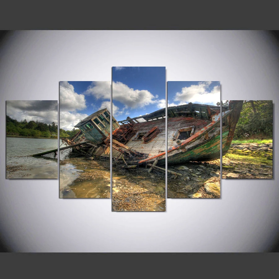 Toile à peindre fraîche bateau de pêche | 5 panneaux, toile imprimée HD, décor de salle imprimée, affiche d'image, livraison gratuite, | AliExpress
